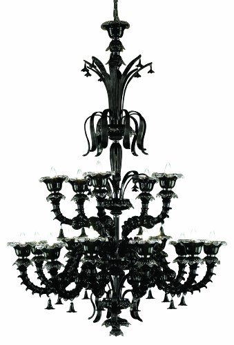 Blown Glass-Murano Glass Two Tier Chandelier with Black glass from the Orillia Collection by Eurofase Lighting. Dimensions: 74.38 H 56.38 W Metal finish: Chrome Black Shade Actual fixture dimension: 56.38"Dx74.38"H Uses 15x60Watt B10 bulb. Bulb Sold Separately Blown Glass-Murano Glass Two Tier Chandelier with Black glass from the Orillia Collection by Eurofase Lighting. Dimensions: 74.38 H 56.38 W Metal finish: Chrome Black Shade Actual fixture dimension: 56.38"Dx74.38"H Uses 15x60Watt B10 bulb. Bulb Sold Separately ... Read More